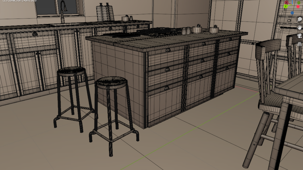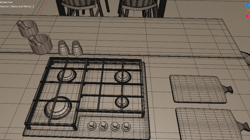 The scene is already furnished but the product has separate FBX files, so you can furnish your kitchen the way you want.